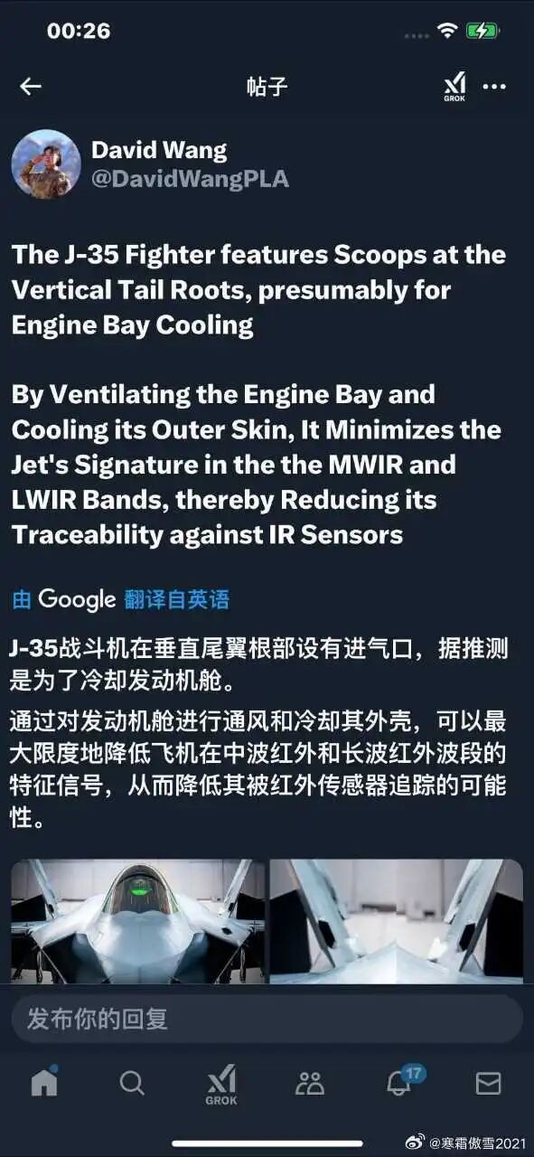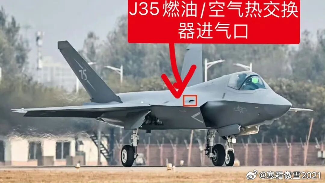 ➡️图2是J35的发动机引气冷却口、增加了一定的垂尾内侧和前半球RCS散射源,但截面为梯形明显S型内埋于垂尾说明有隐形处理,可见J35垂尾制造复杂、里面有液压管线和尾翼舵面驱动机构还能挤出空间在垂尾内侧装冷却口。