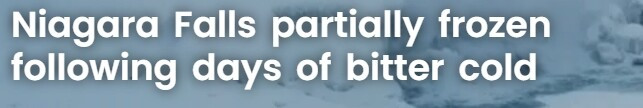 “在经历长时间极寒和降雪后,尼亚加拉瀑布出现局部冰封,冰雾与壮观的冰层结构吸引了来自世界各地的游客和摄影师。”