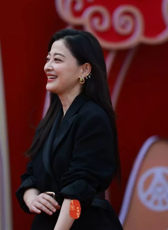 梅婷开年就拿出了两部剧。《太平年》正在热播,《生命树》也是爆款预备役,红毯上梅婷看着也神清气爽,黑色西装搭配羽毛长裙,笑容亲切灿烂。