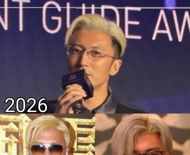 成都街头他还是黑发,48小时后抵达泉州餐厅颁奖现场,发色已变。舞台灯一照,分层冷调十分明显,和旁边一水深色西装的嘉宾形成反差。