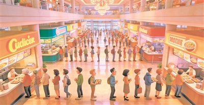 在知名网红餐厅排队很久才吃到的食物,往往更让人喜欢。图片由AI生成