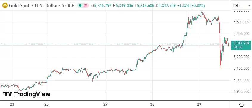 周四(1月29日)纽约时段,贵金属价格快速跳水,现货金价短线一度跌超400美元,随后收复了近一半跌幅。