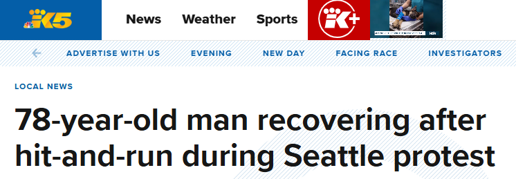 西雅图抗议活动现场,七旬老人被撞Carrie