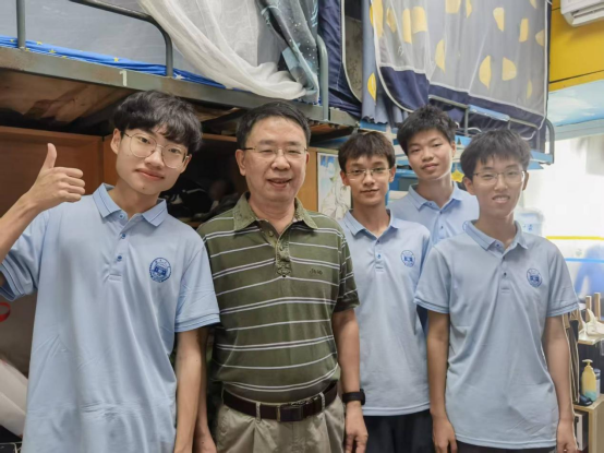 文双春(左二)在学生宿舍