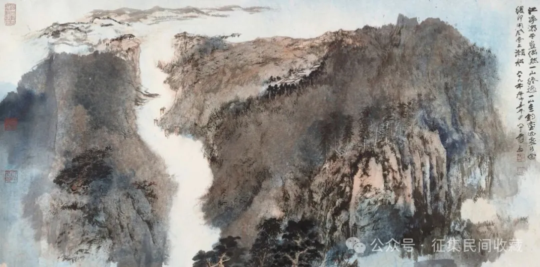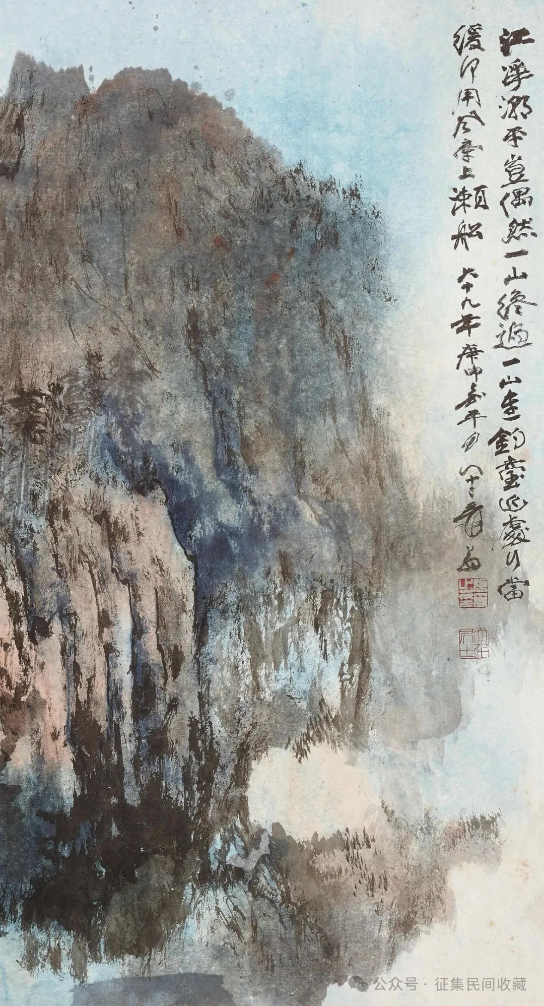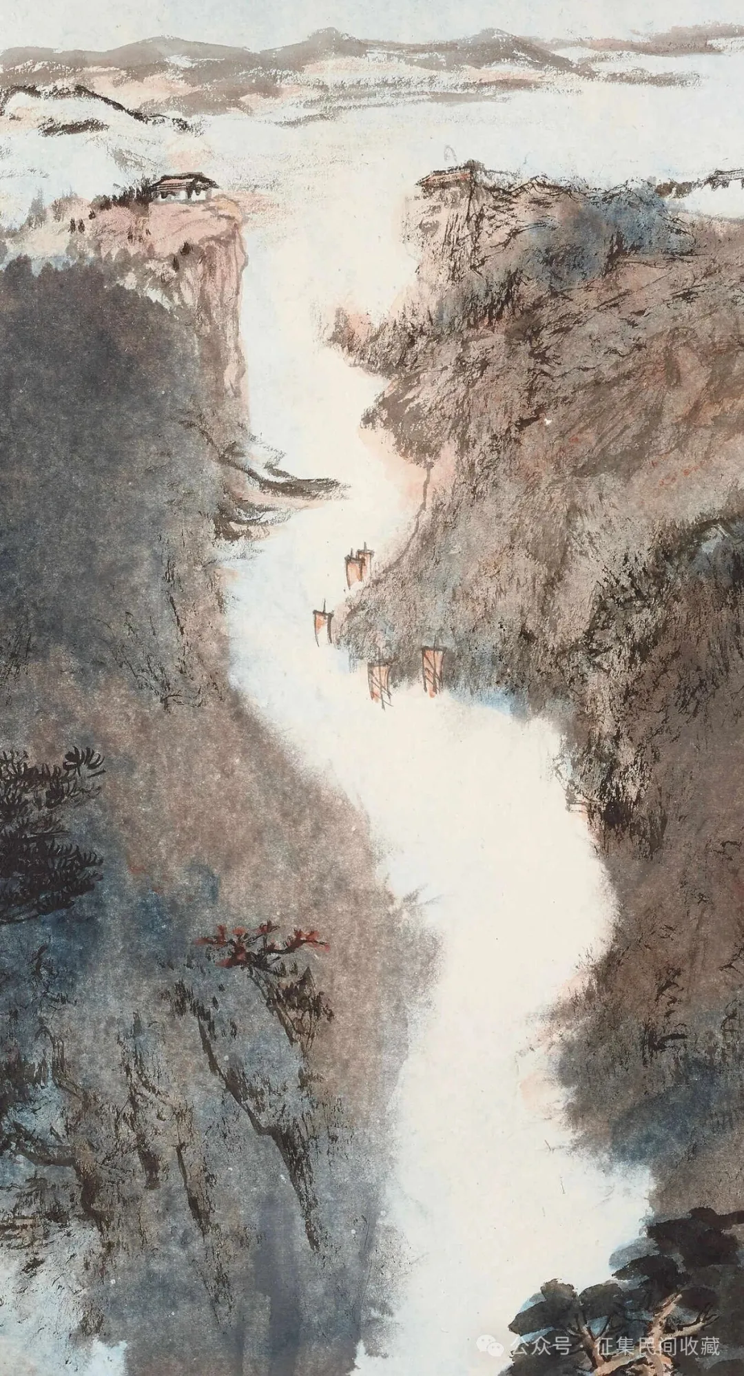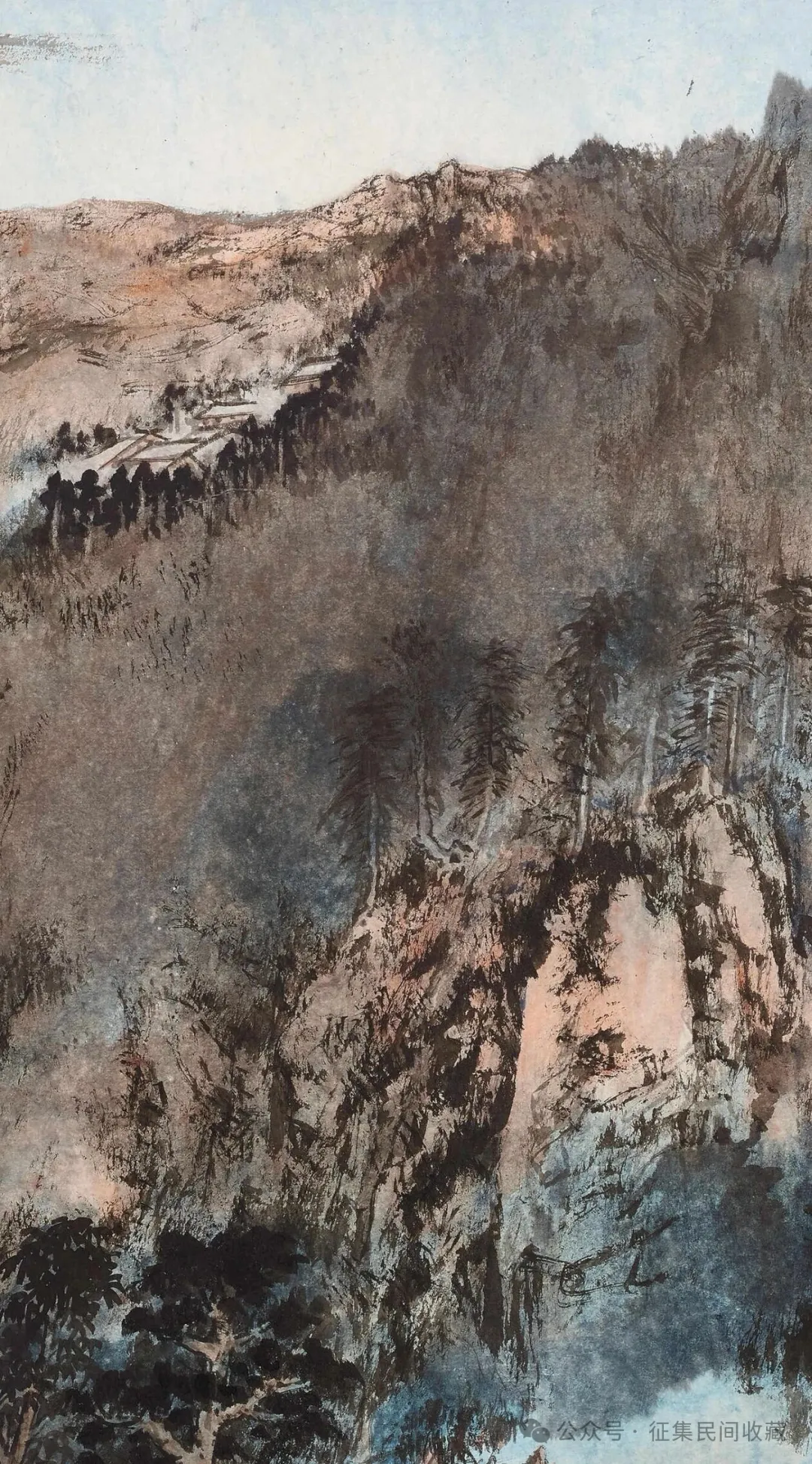 到了晚年,他不再直接画黄山的“高峰”,而是选择从富春江慢慢走进去。