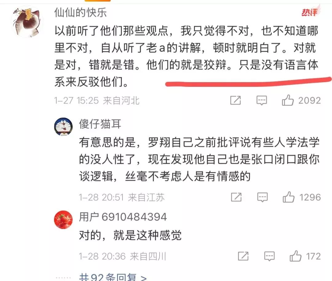 也所以,你牢A反驳的不是罗翔,热搜的词条应该是,“牢A反驳人大立法”。