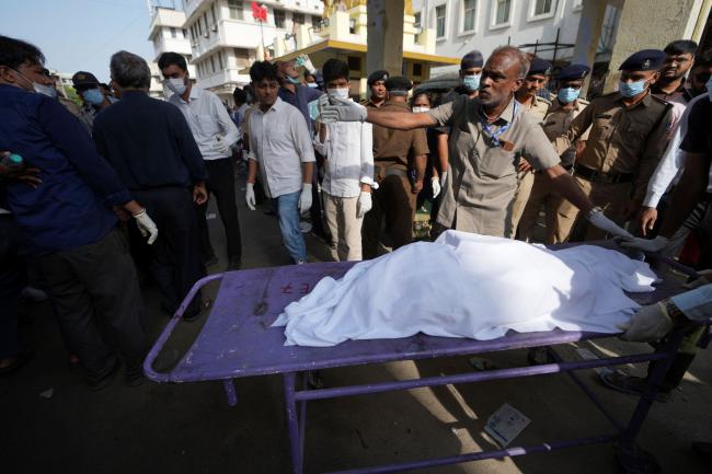 2025年6月13日,搜救人员正在印度航空空难现场寻找生还者。(美联社)
