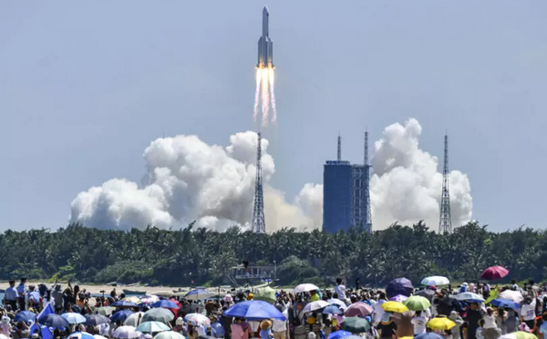 一枚载有中国空间站二号舱段的火箭从中国南方的文昌发射场发射升空 2022年7月24日 AFP - -