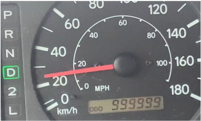 他最近拍下了一段视频,记录里程表跳到999,999公里的瞬间----这是该车里程表所能显示的最大数字。