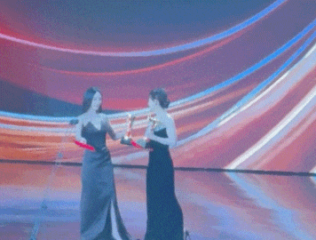 在发表完获奖感言后,杨幂主动转身,与身旁的孙俪自然拥抱,两人笑容灿烂,台下掌声雷动。
