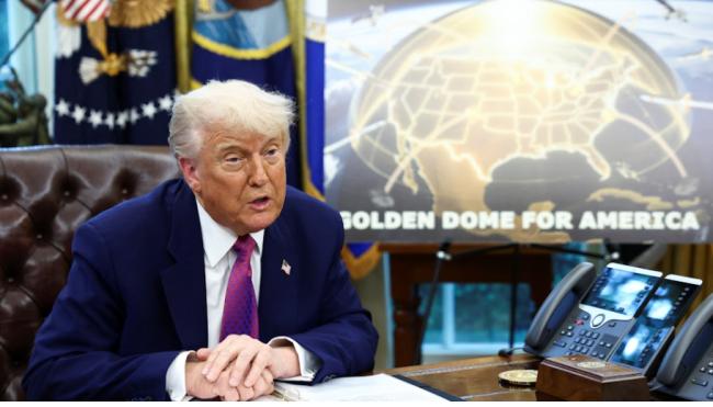 2025年5月20日,美国华盛顿白宫椭圆形办公室,总统川普(Donald Trump)宣布有关金穹导弹防御系统(Golden Dome)的消息。(Reuters)