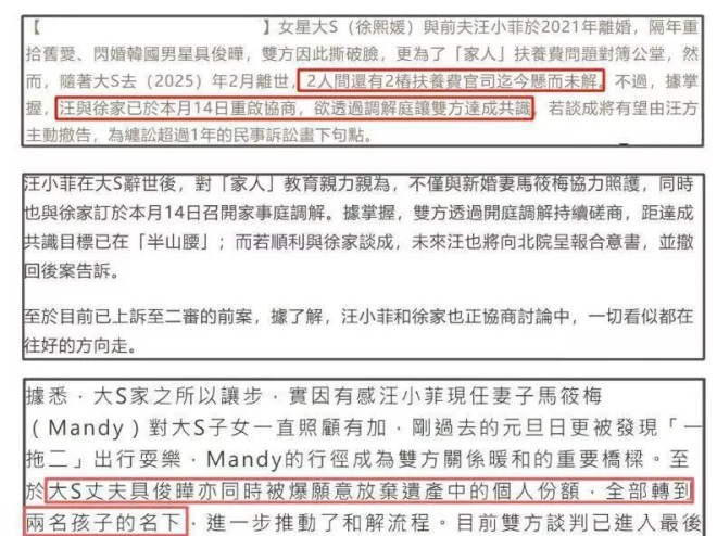 为什么会有这样的猜测呢?要是在以前,汪小菲肯定会避免这个话题,但近期,他和S家的关系似乎变得和缓不少。再加上具俊晔放弃了遗产份额,把那部分转到玥儿姐弟头上,以及马筱梅把大S的两个孩子当作亲生的一样,看得出这两家人之间的关系逐渐在缓和。