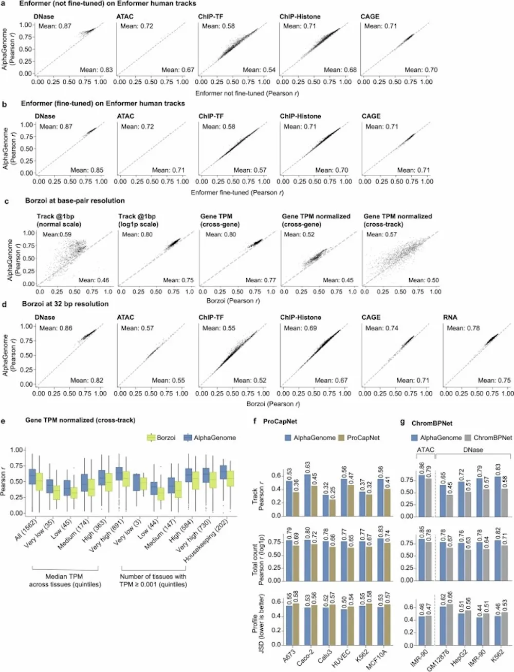 研究团队基因组轨道上的预测性能进行了逐项评估