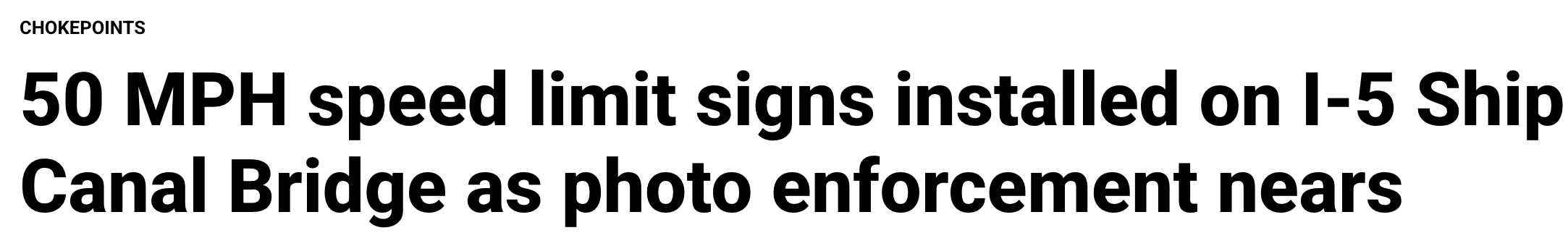 KIRO Newsradio 的交通记者Chris Sullivan于周五实地观察到,施工区内原有的“摄像头测速执法前方(photo enforcement ahead)”标识牌上方,现已补齐了 50 英里的限速数字。在此之前,该测速区一直未明确标注具体限速。