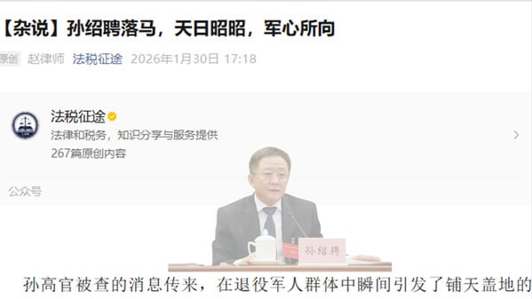 另一篇以“军心所向”为核心的指控文章称,天日昭昭,法网恢恢,孙高官被查,是民心所向,是正义彰显,照亮了“不是不报”的公道,也让全国退役军人看到了希望。