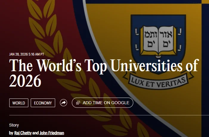 1月28日,美国《时代》(Time)杂志发布了2026年全球顶尖大学排名(The World’s Top Universities of 2026),加拿大有五所大学进入前100名。