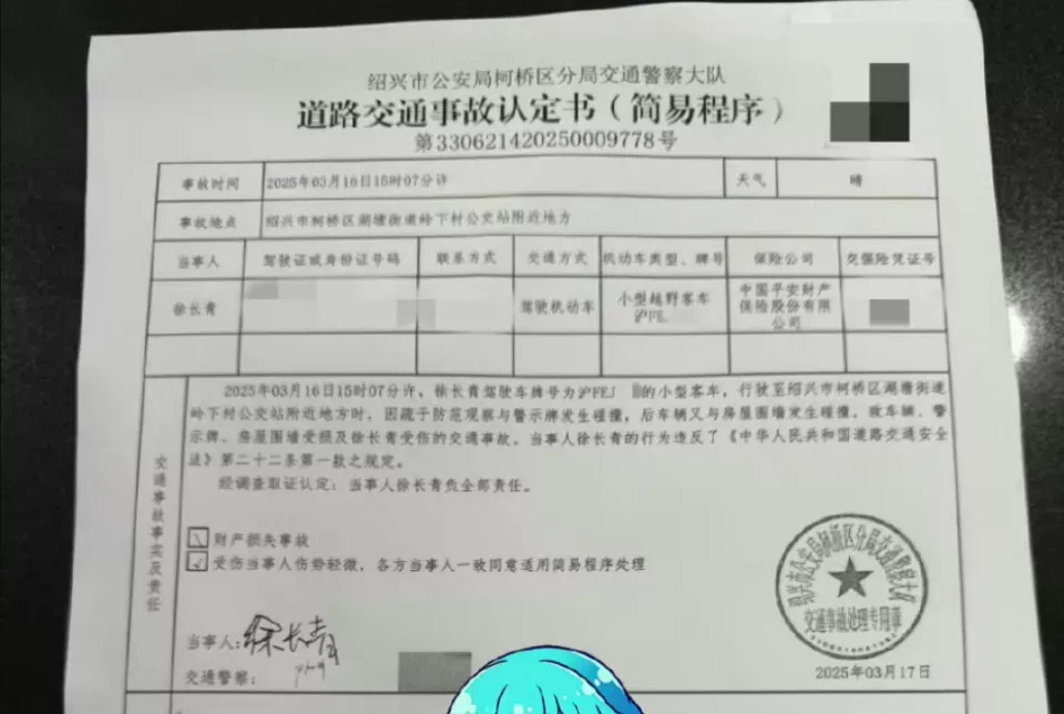 徐长青出于“快速完事”等目的,谎称自己驾驶车辆,并配合交警完成简易程序的事故认定。
