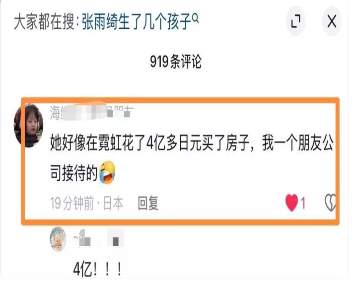 坊间传闻,去年她还斥资4亿日元(合计1810万人民币)在日本购置豪宅一套。