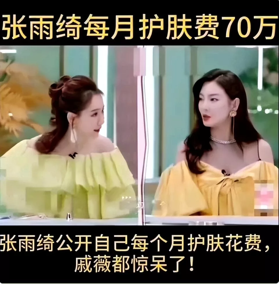 1.张雨绮:月护肤品花销70万
