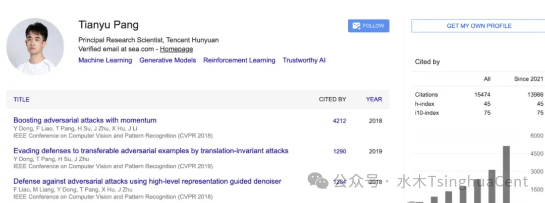 在读博期间,他便展现出惊人的科研战斗力,不仅是ICML、NeurIPS、ICLR等AI顶会的常客,以第一作者身份发表多篇论文,更几乎横扫了学生时代的所有重量级荣誉。从全球仅遴选10人的“百度奖学金”,到“微软学者奖学金”、“英伟达学术先锋奖”,再到WAIC云帆奖、钟士模奖学金以及CAAI优秀博士论文,这份履历堪称“金光闪闪”。他的研究实力在实战中也得到印证,其团队曾在NeurIPS 2017对抗攻防竞赛及GeekPwn 2018国际安全极客大赛的AI对抗赛道中夺得冠军。博士毕业后,庞天宇曾前往新加坡Sea AI Lab担任高级研究科学家。
