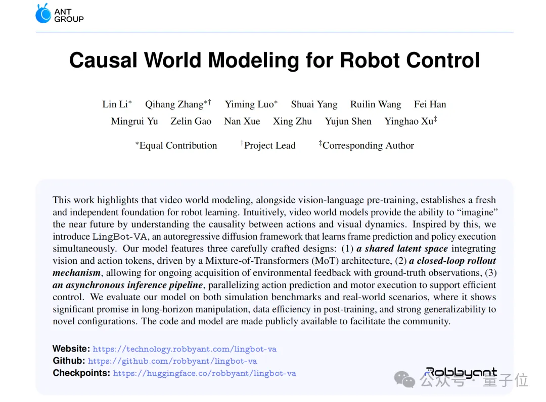 全球首个用于通用机器人控制的因果视频-动作世界模型,LingBot-VA。