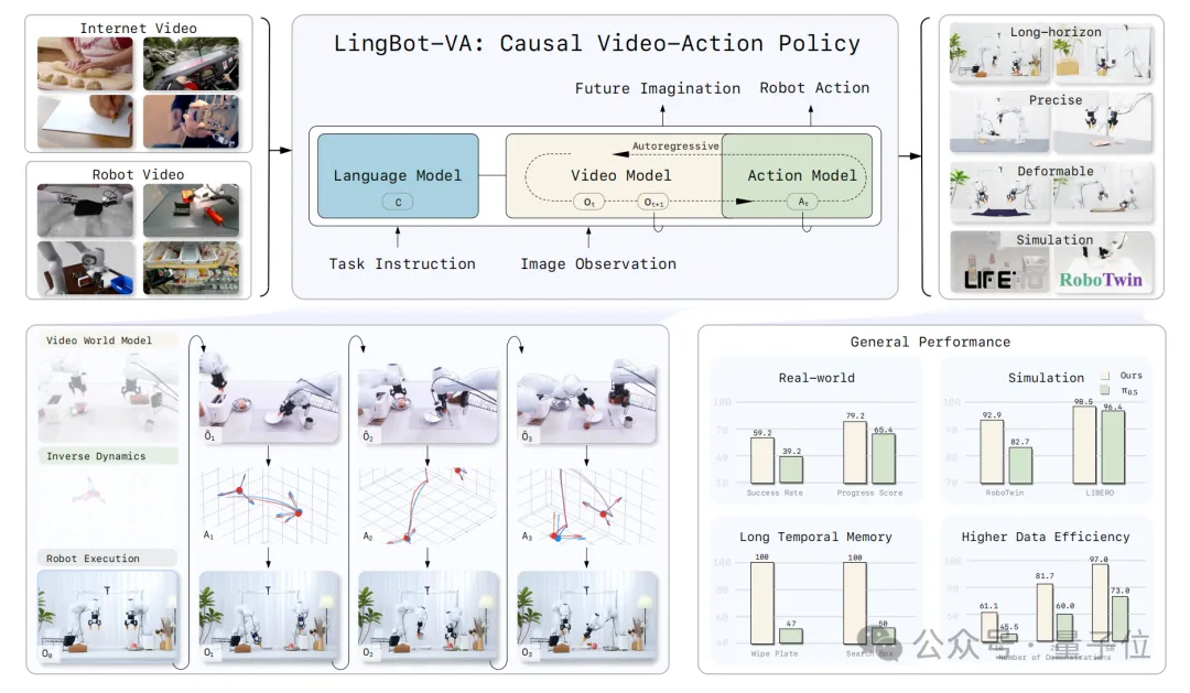 如果说前几天的开源是给机器人加强了眼睛(LingBot-Depth)、大脑(LingBot-VLA)和世界模拟器(LingBot-World),那么今天的LingBot-VA,就是让这具躯壳真正拥有了灵魂——