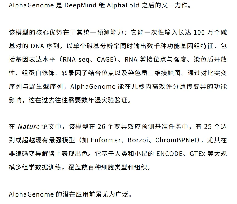 DeepMind 于 2025 年 6 月首次在 bioRxiv 发布 AlphaGenome 的预印本,并开放 API 预览。但模型在 Nature 正式发表后,团队同时宣布了完全开源研究代码和模型权重。
