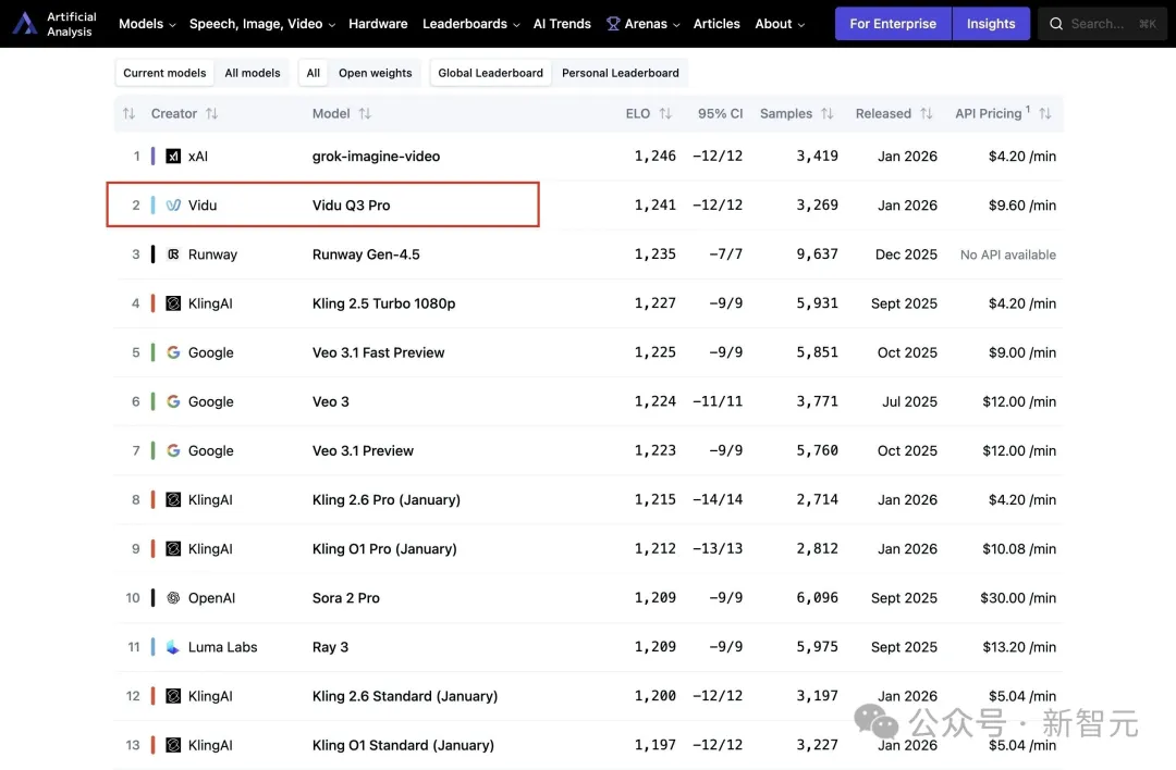 在Artificial Analysis最新榜单中,Vidu Q3表现非常亮眼,硬刚马斯克Grok,位列中国第一、全球第二。