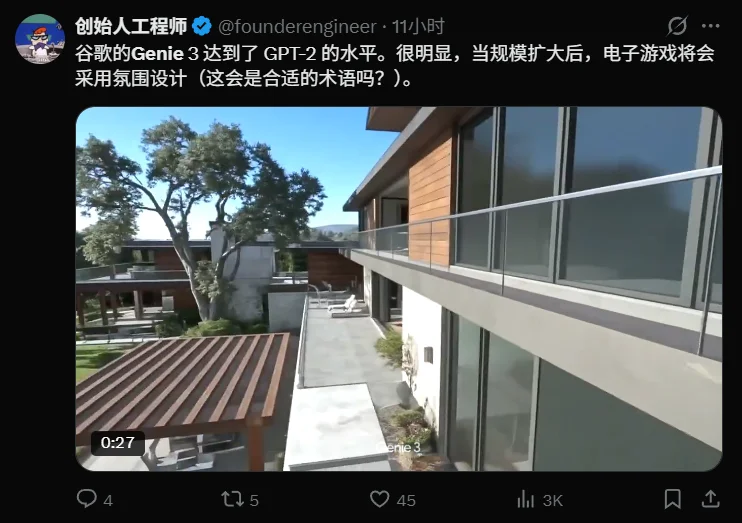 还有更夸张点的哥们儿,直接把 Project Genie 和 GPT-2 相提并论。GPT-2 之于 AI 界是什么地位,大伙儿懂得都懂。