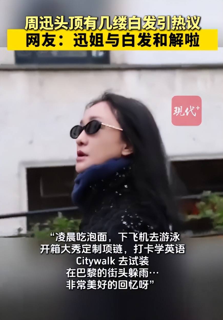 1月28号,周迅工作室放出巴黎看秀的幕后片段,镜头里她头顶那一撮白发在自然光下格外显眼,脸也圆了一圈,褪去精修滤镜的真实模样,就像是身边的中年姐姐。