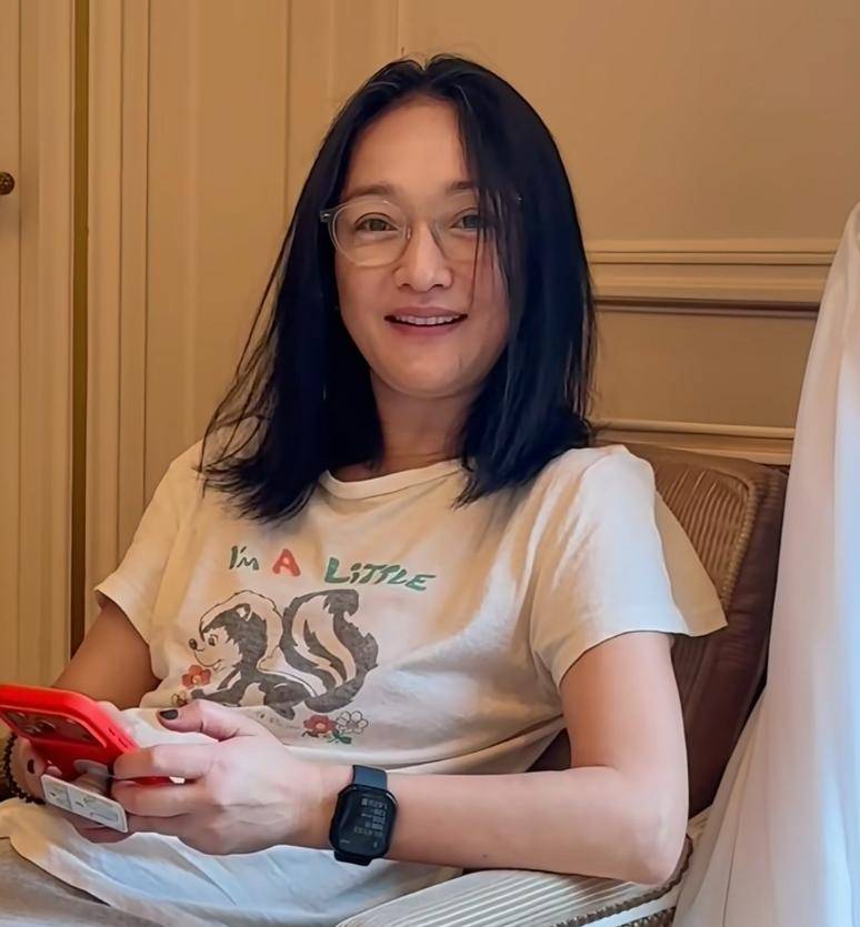 户外助理随手拍的生图里,后脑勺位置的白发更明显,素颜状态下双下巴悄然浮现,戴着普通眼镜的她,就跟普通中年姐姐似的,早年那股子灵气,如今全然换成了温润的人间烟火气。