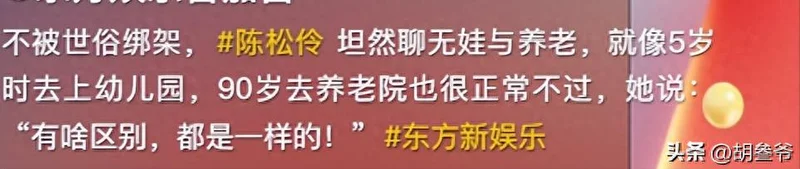 1月30日,陈松伶在最新采访里聊起无娃与养老的话题,瞬间刷爆了短视频平台。