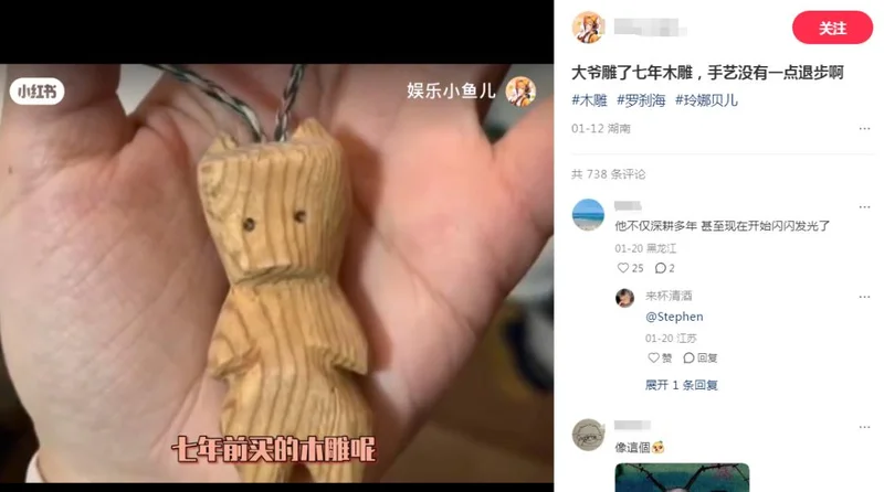 有网友晒出7年前买的木雕,对比之下惊人地发现:大爷的手艺“十年如一日”,几乎没有任何“进步”。