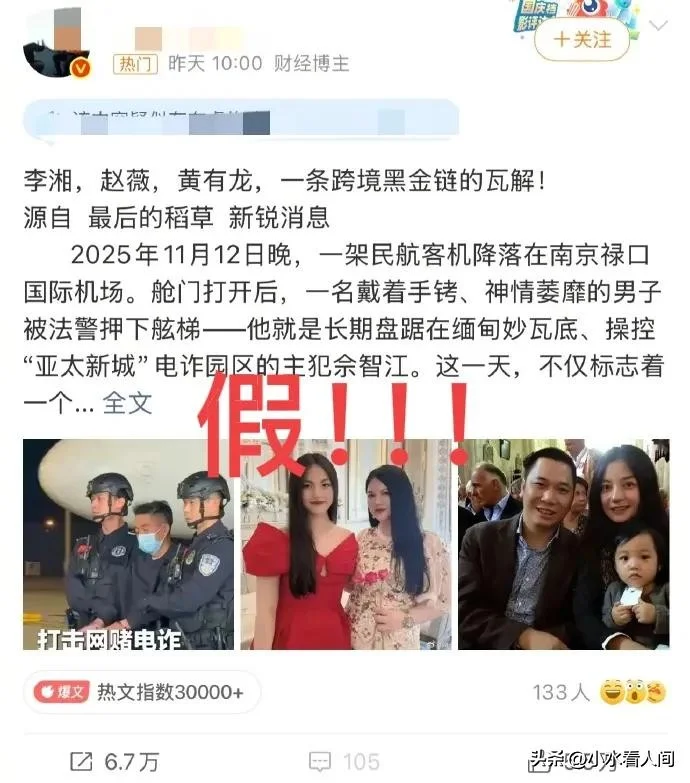 网上出现了一篇《李湘,赵薇,黄有龙,一条跨境黑金链的瓦解!》的文章,在网络上疯传,让赵薇造次被拖入参与电诈的离谱舆论中。