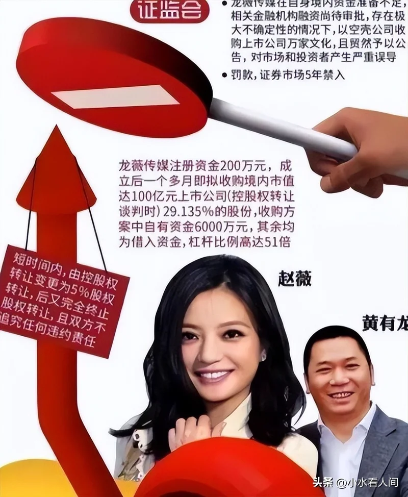 2016年,赵薇和黄有龙夫妻俩用高达50倍的杠杆收购上市公司“万家文化”。