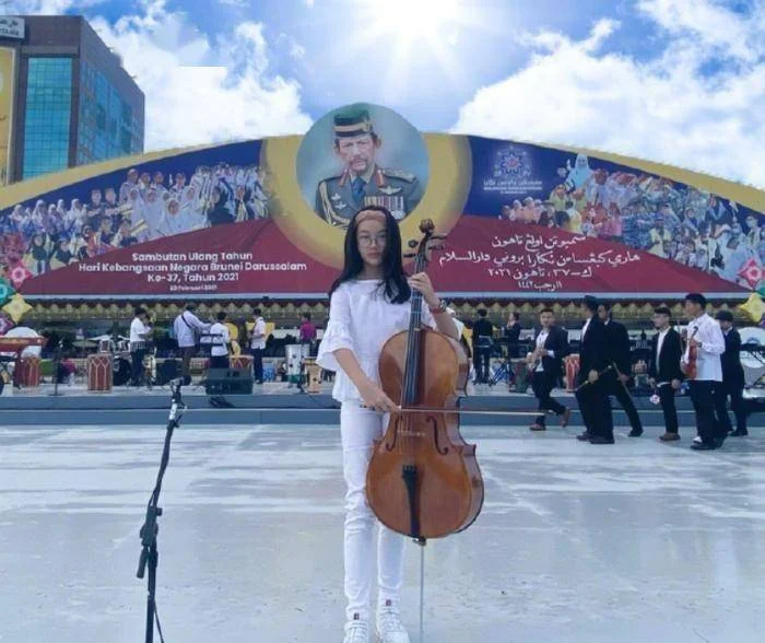 更厉害的是11岁那年,她居然在文莱国庆典礼上给国王拉大提琴,这排面可不是一般星二代能有的。