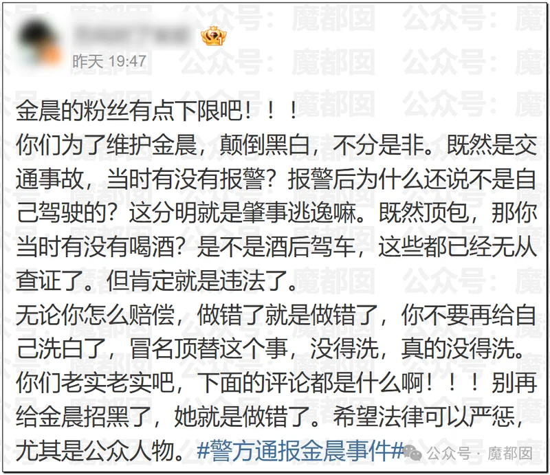 这个事情其实是起了一个非常不好的头,如果金晨这次可以安然脱身,那么以后其他人是否可以效仿?随意顶包?