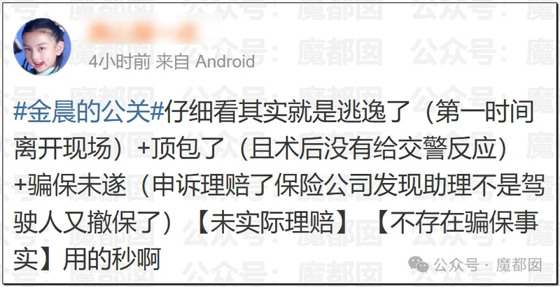 一些懂法的大V也都指出了这点,金晨不是没有骗保,是不成功后撤下了。