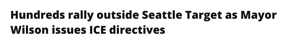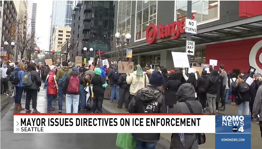 周五(1月30日),数百名抗议者包围了西雅图的一家Target门店,要求这家零售巨头切断与联邦移民执法部门的联系。与此同时,西雅图市长Katie Wilson宣布了一项旨在限制美国移民与海关执法局(ICE)在该市行动的新计划。