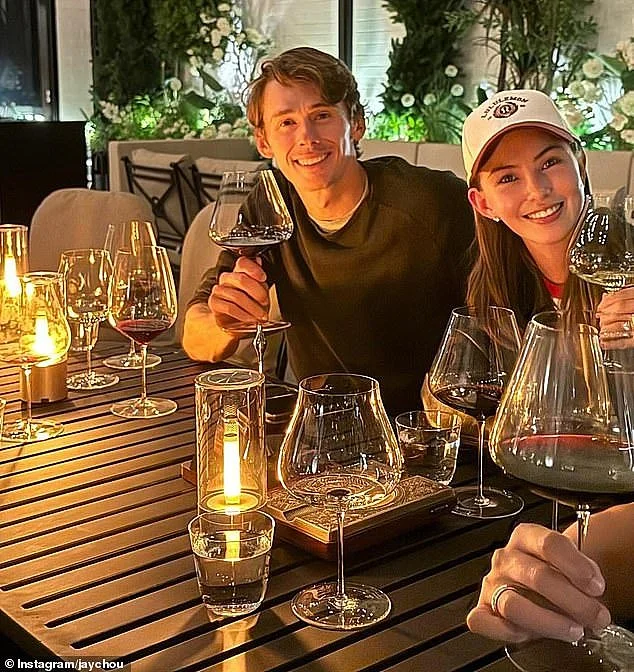 这场酒局喝了不少美酒,图中为Alex de Minaur与周杰伦的妻子昆凌合影