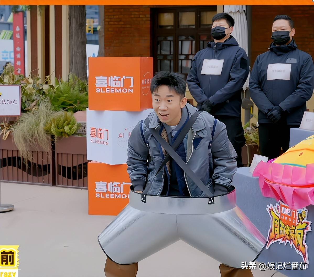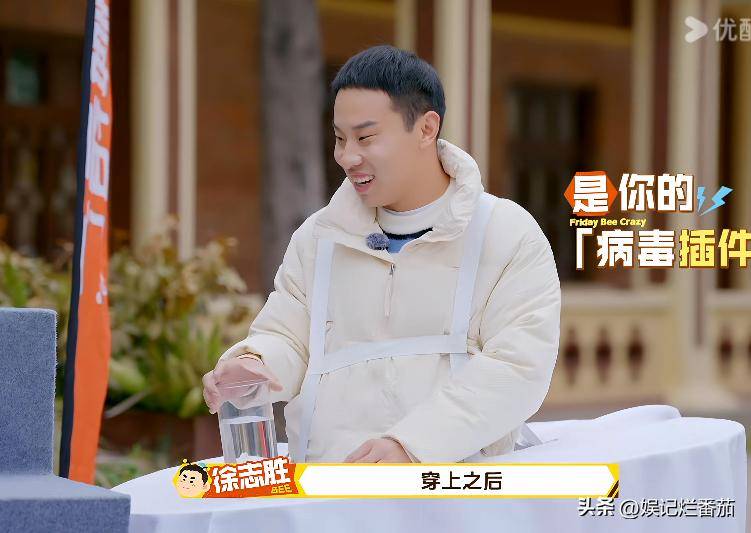 徐志胜不仅要把控水杯里面的水,不能流出来,脚下还要注意不要踩到布,整个过程很窘迫。