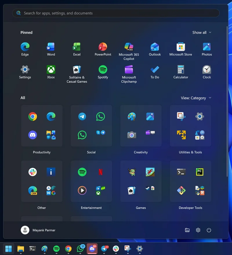 微软表示:“全部应用提升至一级界面,提供三种视图模式,其中包含按分类排列的网格视图,会优先展示你最常用的应用,体验贴近手机,无需再长时间滚动翻找。”