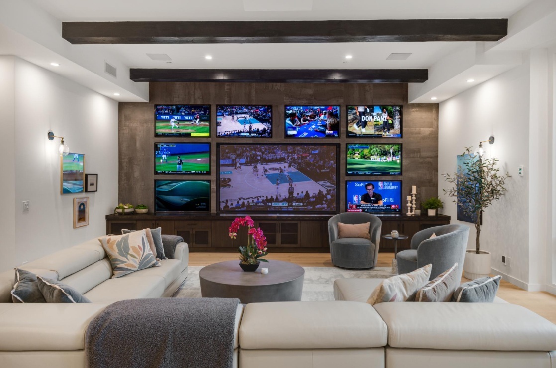 这栋萨拉度加Goetting Court豪宅内部有一个设备齐全的视听室。(取自realtor.com网站)