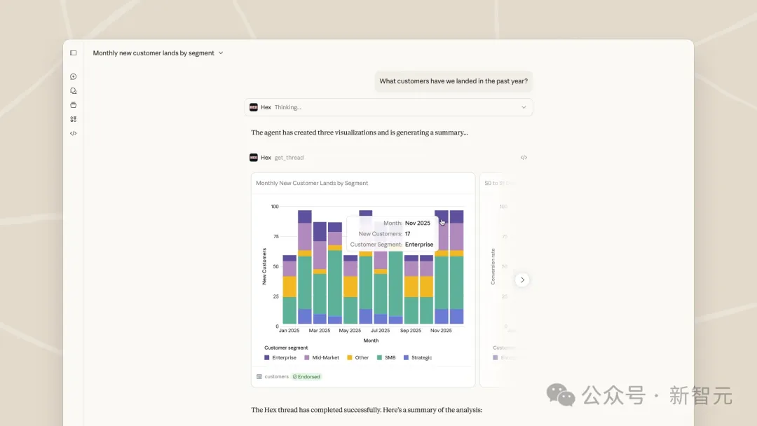 它还可以连接Hex,查询数据并以图表、表格和引用形式获取答案。