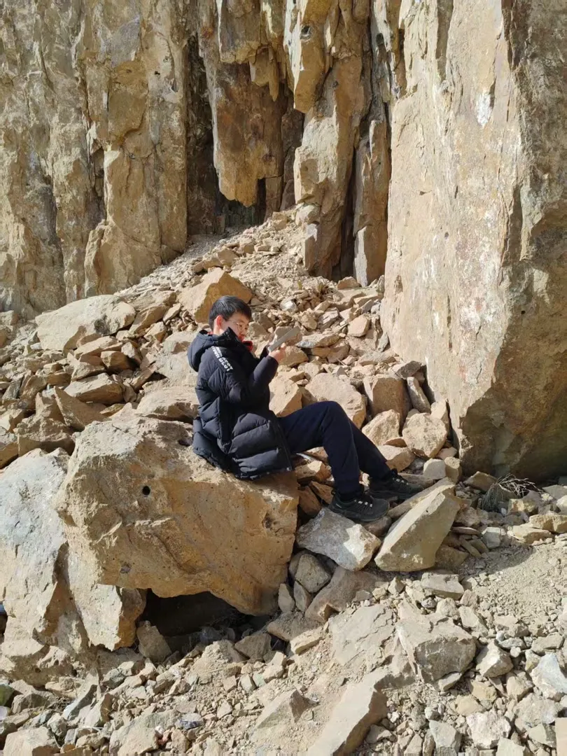 倪景辰在野外寻找化石