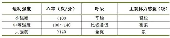 国家体育总局发布的《全民健身指南》中,总结了运动强度划分与监测运动强度指标: