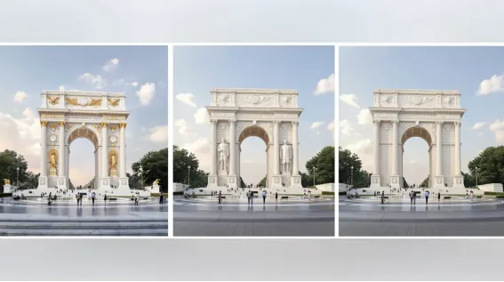 报道提到,特朗普去年年底就公开讨论过相关构想,当时他说,为纪念美国独立250周年而建造一座凯旋门式纪念碑的工程可能在两个月内开始。他1月23日在其自创社交平台上分享了一系列古典凯旋门效果图,引发新一轮猜测。这些图片展示了多种设计方案,其灵感来源于法国巴黎凯旋门等欧洲古典风格拱门,以巨型柱体、宽阔中央开口和华丽细节为特色。