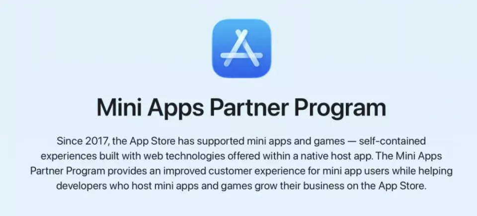 即便在2025年11月14日,苹果官方发布“App Store Mini App Partner Program(苹果商店小程序合作伙伴计划)隆重推出”的公告,参与该计划的开发者在销售符合条件的App内购买项目时可享受15%的收益抽成减免,看似让步,实则充满限定条件。