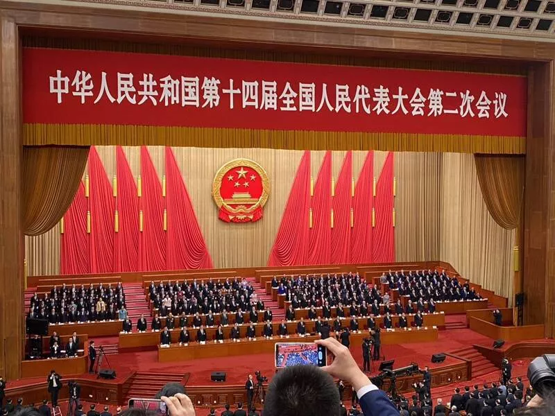 图为中国第14届全国人民代表大会第二次会议现场。(中央社)