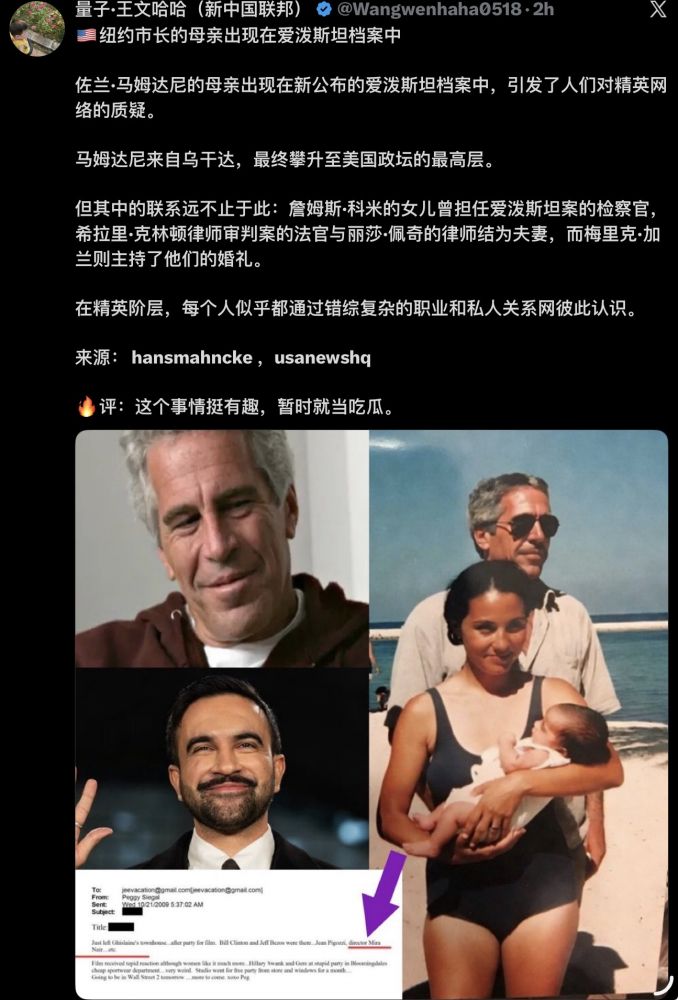 越来越好玩了,纽约新市长他妈也是萝莉岛的角儿